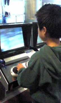回遊水槽を螺旋状の階段を上り一階から二階へ上がって来たわ。 二階には色々な体験が出来るコーナーが。 ミニラは早速体験開始(笑)