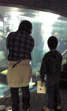 大きな回遊水槽の中に水中カメラがあり、それを自分で操作し、魚を間近に移しモニターで観察です(⌒^⌒)b
