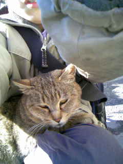 うちの周りにはノラちゃんが結構いる。 その中の一匹が凄く懐っこい。 ミニラにベタベタなのだ☆ しかし変な事にうちのニャンコ達はミニラが苦手らしく逃げ回る(;^^)ヘ..