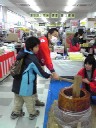 初売りにジャンボエンチョーへ来たら、調度、餅つき大会やってたの。 ミニラは早速参加してたわ(笑)
