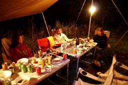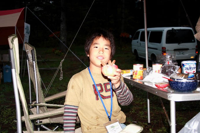 牛鍋パーティー 地元の赤城牛を使った牛鍋でディナータイム。 夜はキャンプファイヤーを囲んで楽しい時間を過ごしました。